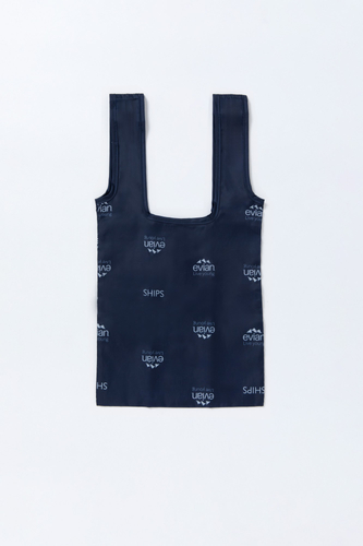 お馴染みのローソンストライプにSHIPSロゴを融合させたデザインや、対象商品である「エビアン」をモチーフにしたデザインなど、全3種類のオリジナルエコバッグをご用意。