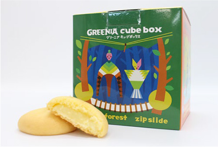 グリーニアのキャラクターイラストが可愛いBOXタイプのお土産菓子です。カスタードクリーム入りのケーキ6つ入りで手軽なお土産にピッタリ。