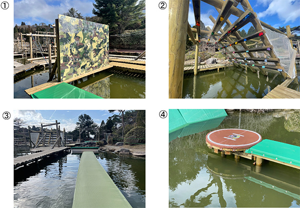 グリーニアで大人気の水上アスレチックでは、2023年3月に新たに4つのアスレチックを建設しました。
