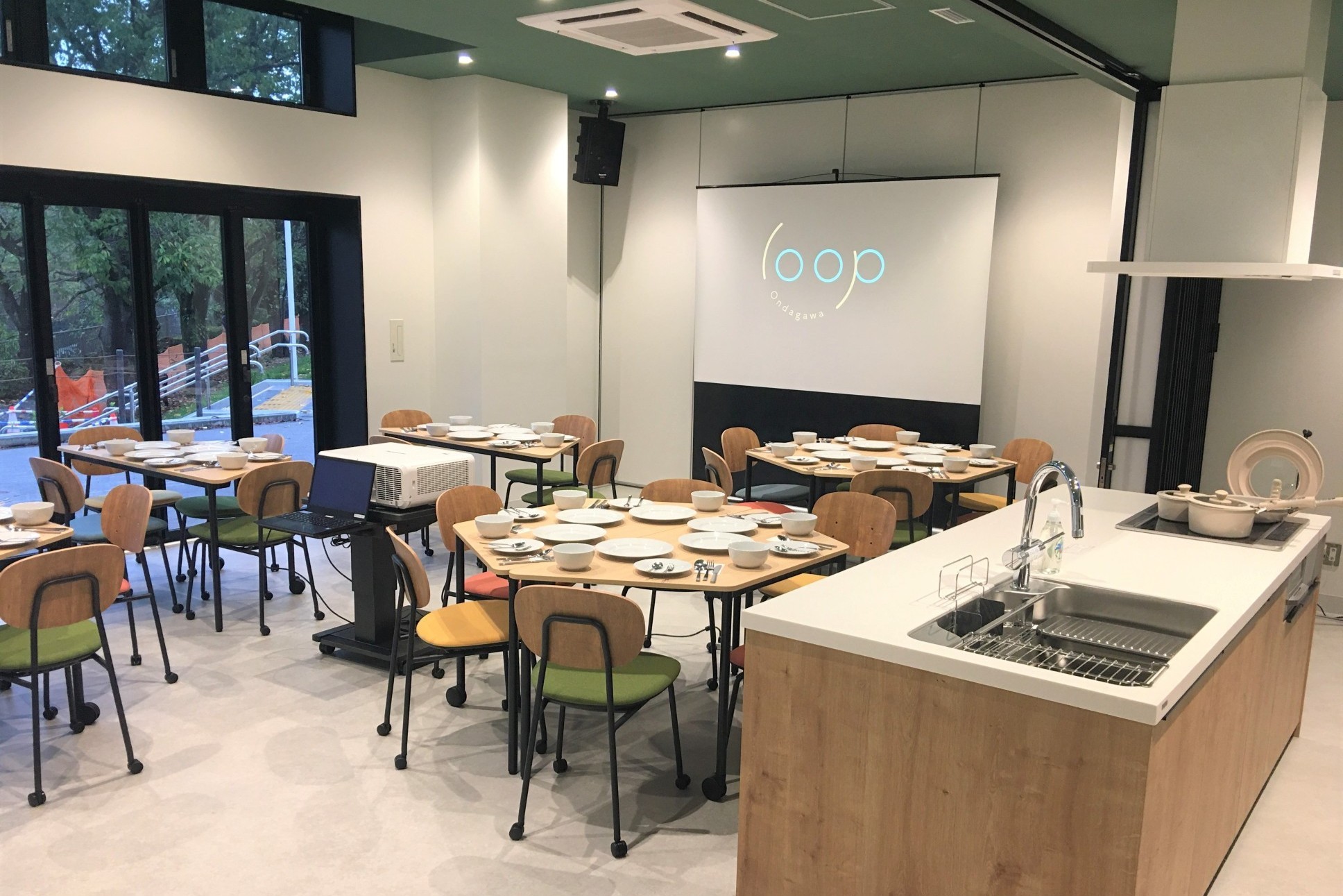 町田市在住・在勤・在学の方を対象に、多目的に利用できる部屋です。キッチン付きで、乳幼児から高齢者までを対象にした食育講座や料理教室等にも活用できます。カフェ「loop Ondagawa」メニューの利用も可能です。