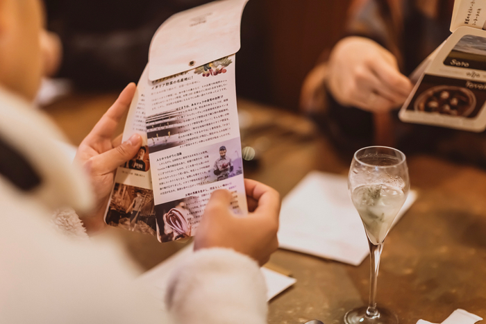食材をテーブルで届けるだけではなく、地域の魅力・温かみ・面白さをより深く伝えるため、食材や地域、生産者の想いやストーリーを伝えるメニューブックを、オリジナルメニューの提供期間中、店舗にてお配りします。