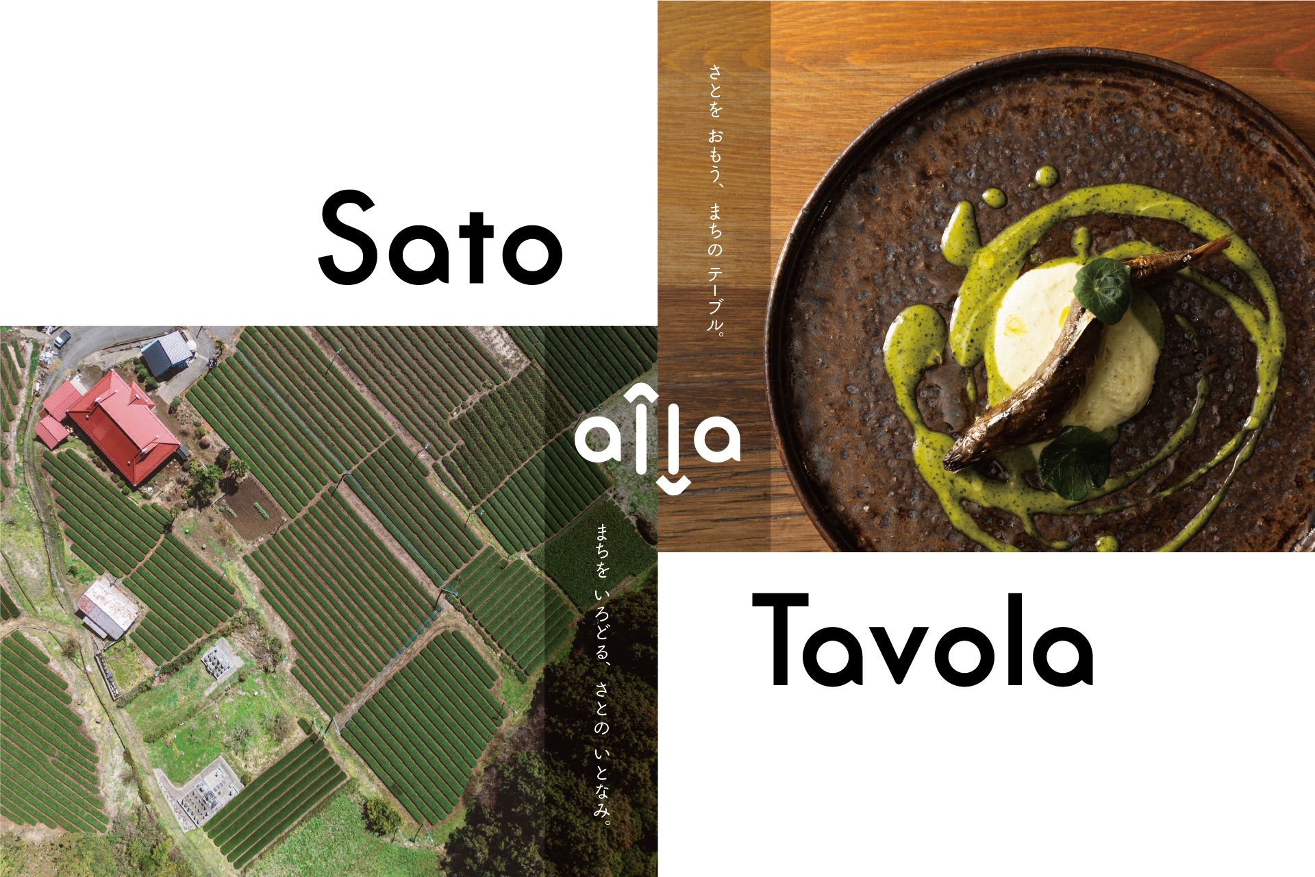 Satoは、ふるさと、里・郷(さと)、そしてalla Tavolaはto tableの意を持つイタリア語。「ふるさとをあなたのテーブルへ」を意味する造語です。
