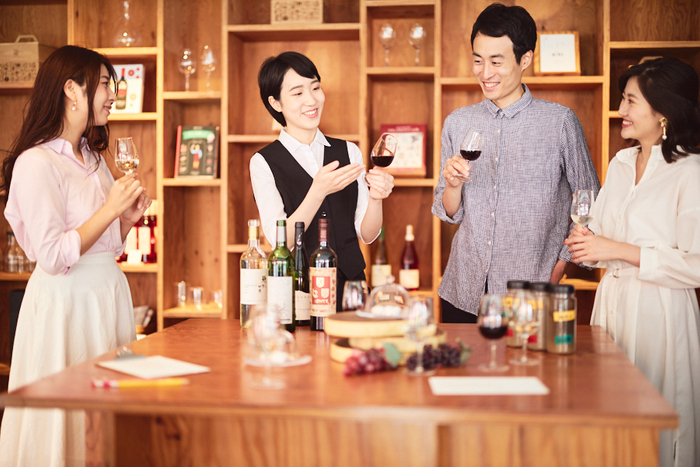 発酵をテーマに、ワインについて知るプログラムです。ワイン造りには発酵の過程が重要です。例えば、ワインの発酵を終えるタイミングの違いでワインの味わいが変わります。また、スパークリングの泡を発生させるための二次発酵の製法の違いで泡の強さやきめ細かさが変わります。ワインのテイスティングをしながら、「知る」はおいしい、を実感できる体験です。