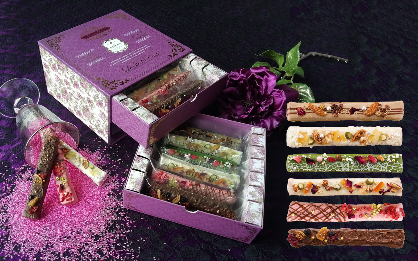 3本入 アンベリールに入った3種のスティックラスクに加え、ストロベリーチョコレート&シャンパン、抹茶チョコレート&ブランデー、レモンチョコレート&日本酒が仲間入り。今しか味わえない魅惑のマリアージュをお試しください。