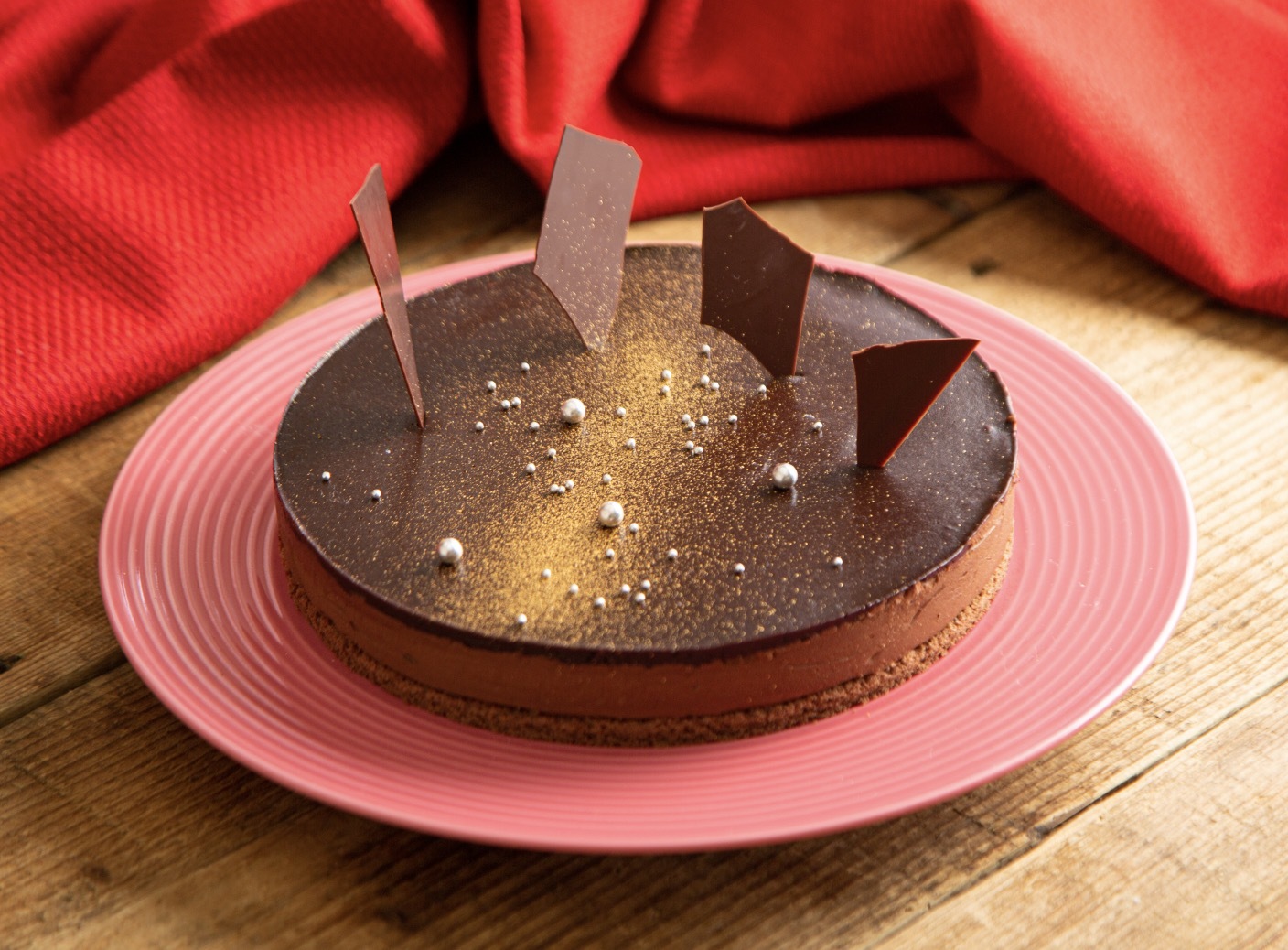 ふんわりと柔らかなスポンジをボトムに敷き、チョコレートで仕上げた濃厚な味わいが魅力のムースを主役に。艶やかなムースのトップには、シルバーのアラザンとカッティングチョコレートが華やぎ、バレンタインならではの特別感をプラスしました。