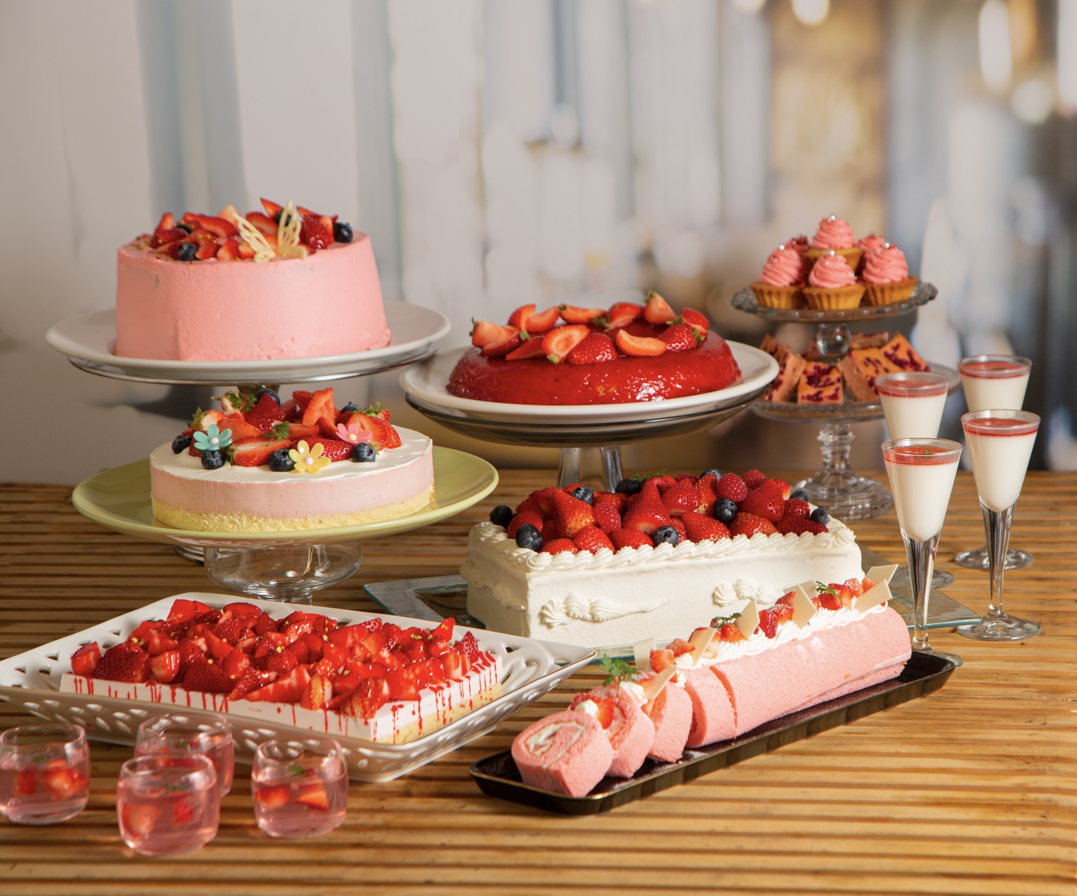 いちごのショートケーキ/いちごのロールケーキ/いちごのエンゼルケーキ/いちごのモンブラン/杏仁豆腐いちごソース/いちごのブラウニー/いちごのシフォンケーキ/いちごゼリー/いちごミルクムース/いちごのレアチーズケーキ