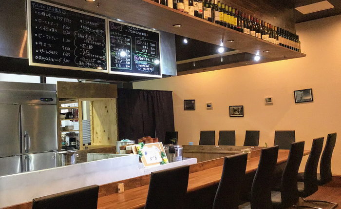 落ち着きと清潔感がある空間は、デートや特別な記念日、普段の食事など用途を選ばず使えます。テーブルやカウンター、ライトなどのインテリアもシックな色調に揃えてあり、穏やかな雰囲気の中で食事を進められるのではないでしょうか。