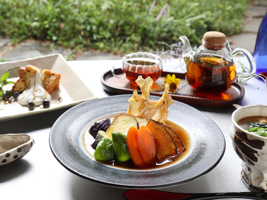 ・豆太郎の有機野菜など環境保全型農業で作られた農作物を中心に地元で採れた旬のものを使用しています。