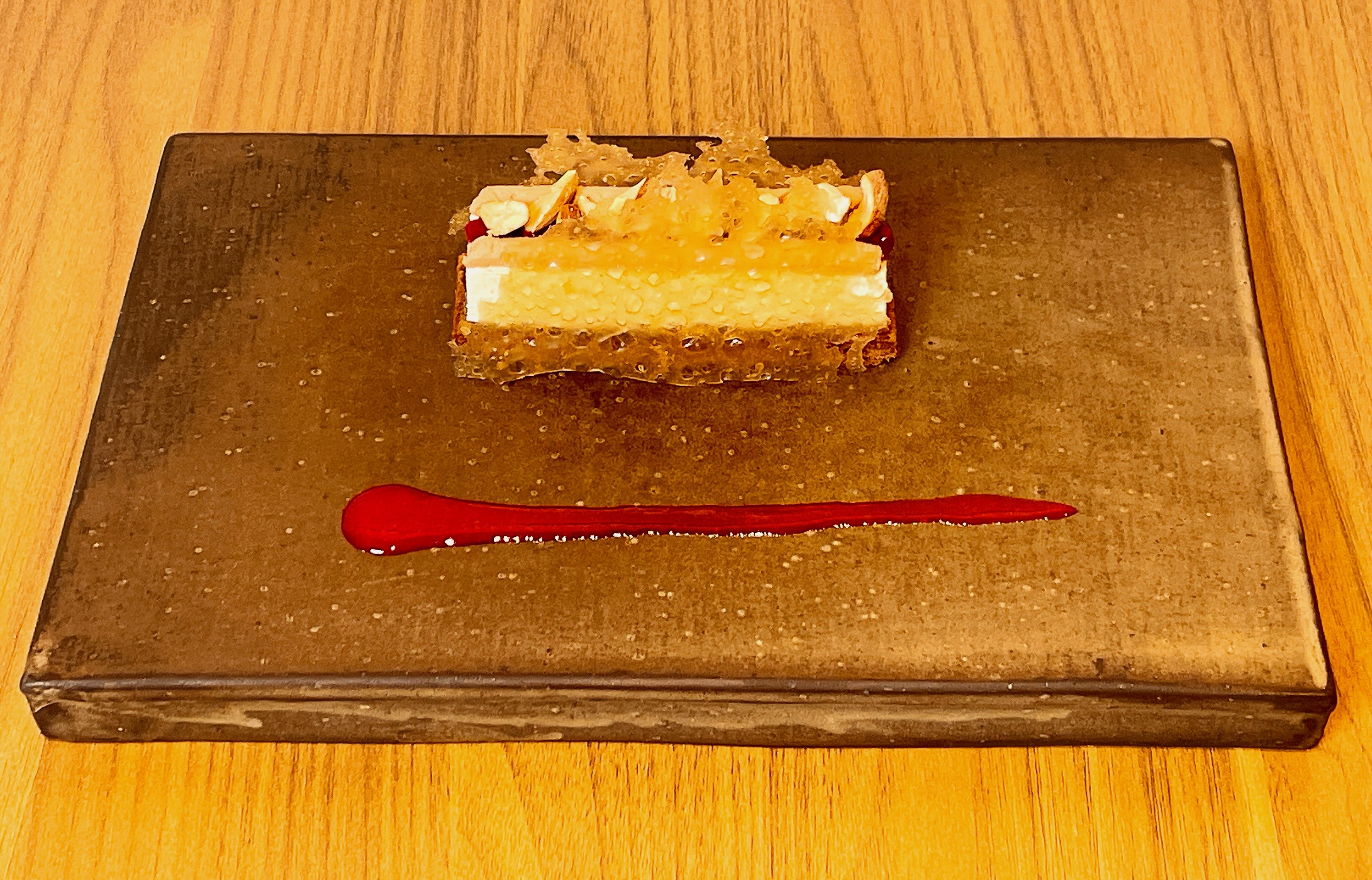 なめらかなバニラのクリーム、濃厚なチョコレート、フランボワーズの酸味が見事に融合した贅沢な一皿です。