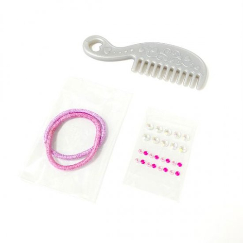 コームやヘアゴムで髪の毛をとかしてあげたり、くくってあげたりお世話ごっこが出来るんです。こちらは付属品となっております。