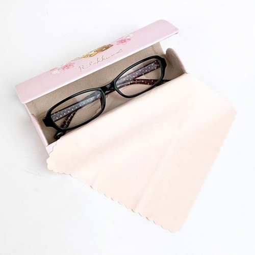 パステルピンクのクロスも付属しています。内側はスウェードタッチで、メガネを収納した時の安定感もバッチリ♪