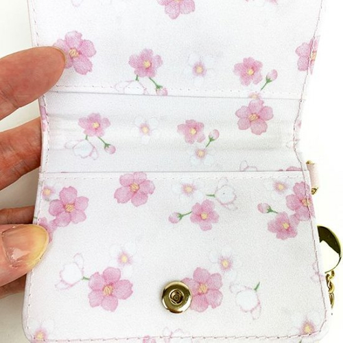 中の生地は桜柄になっています。ポケットも2つに仕切られていて、リップなどよく使うものやすぐに取り出したいものを収納できちゃいます。