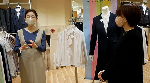 動画内で新井さんは、入社したての頃には仕事の服装について、「自分が好きなものだけではなく、相手からどう見られるかを気にしながら選んでいた」と吐露。今回の企画では、大事なところを抑えつつも自分の個性を出せることが、楽しめるポイントとコメントし、もっといろんなコーディネートが組めそうと、企画を楽しんでいただけました。