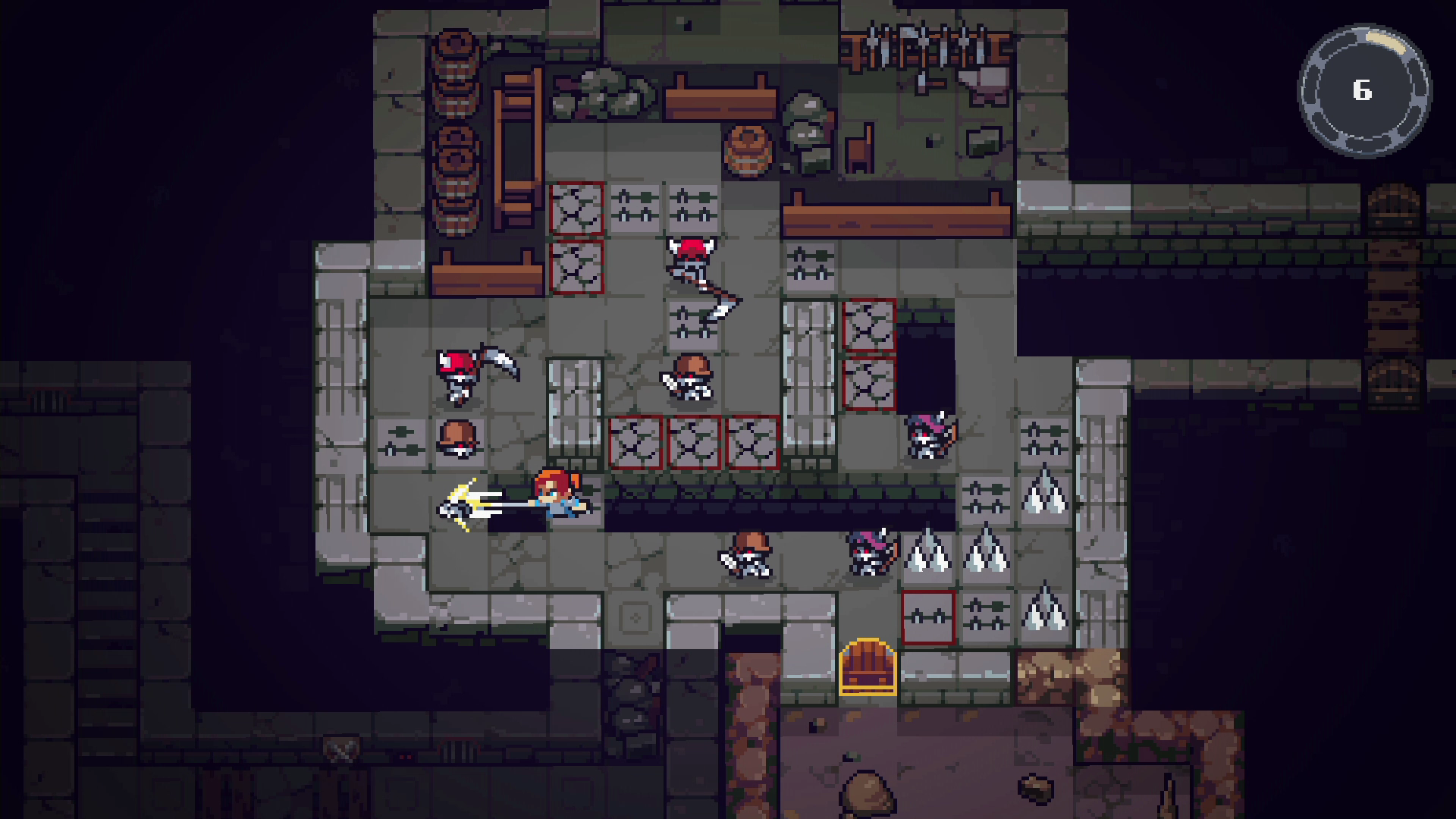 また、待ち構えるウィザーディアンを倒し、脆く崩れ落ちる床や、飛び出すトゲのトラップなど回避する必要もあります。槍がつっかえて進めなくならないように、うまく方向転換をしながら、自分が進むルートを考えて進みましょう。
