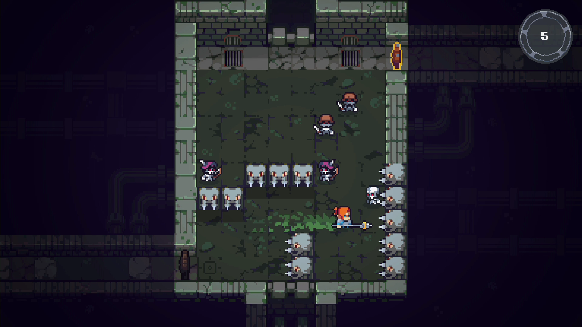 「槍」が長すぎて、この狭いダンジョンの部屋では思うように身動きが取れないようです…。