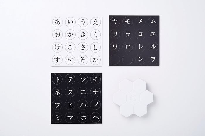 まだ言葉をしらないこどもでも、50音すべてがひらがなの裏にはその文字のカタカナが書かれているため、ひらがなやカタカナを覚えるための道具としても使えます。 50音表をつくったり、文字をとるカルタのように遊ぶことができます。