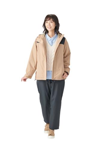 風を通さない仕様であたたかな「防風」機能と、急な雨でも安心の「撥水」機能付き。さらにジャケットは、中綿で保温し熱を逃がさない「蓄熱」機能も施しており、軽やかな着心地と暖かさを両立しています。