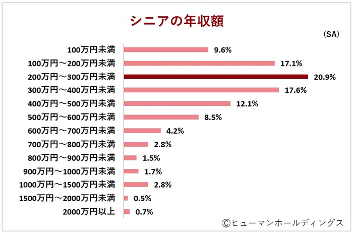 厚生労働省が公表した2023年の「国民生活基礎調査」による、世帯人員1人あたりの平均所得金額は、60~69歳では248万4000円、70歳以上では193万5000円である結果と比較すると、働くシニアの年収額は所得額の平均値を上回っている状況が多いことが明らかになりました。