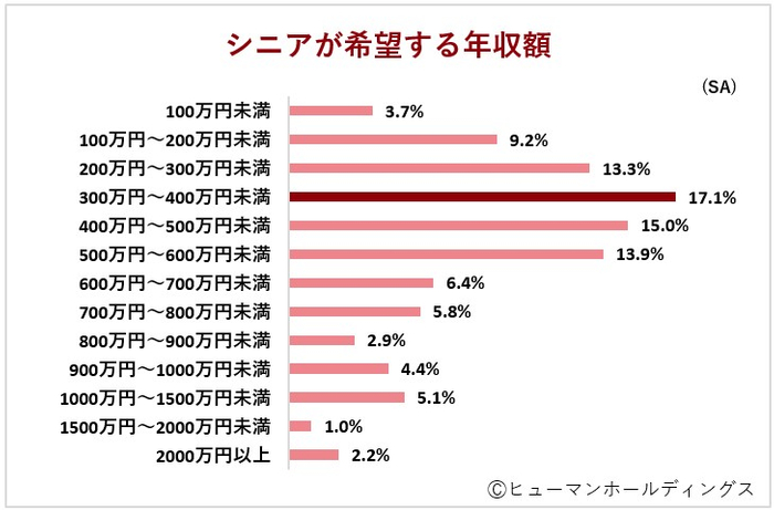 定年退職後に働いている65~74歳の男女対象調査|働くシニアの希望年収は「300~400万円」、年収額と100万円の差