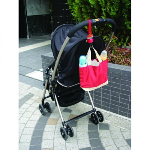 そしてこのカーフックのすごいところは、ベビーカーのグリップにも取り付けられるところ!これは子育てママには便利です♪