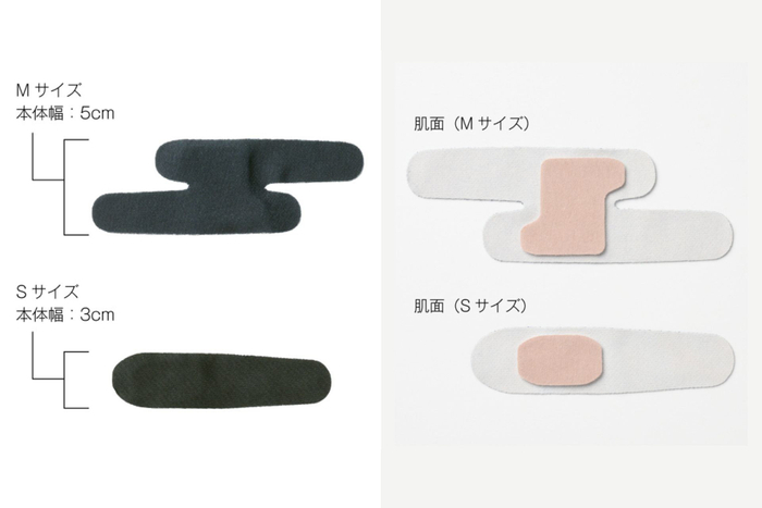 素材同士がひっつく特殊な素材を採用。面ファスナーを使用していないため、ストッキングなどの衣服に引っ掛かる可能性も少ないです。また、素材も約0.5mmと薄いのでかさばりにくいです。
