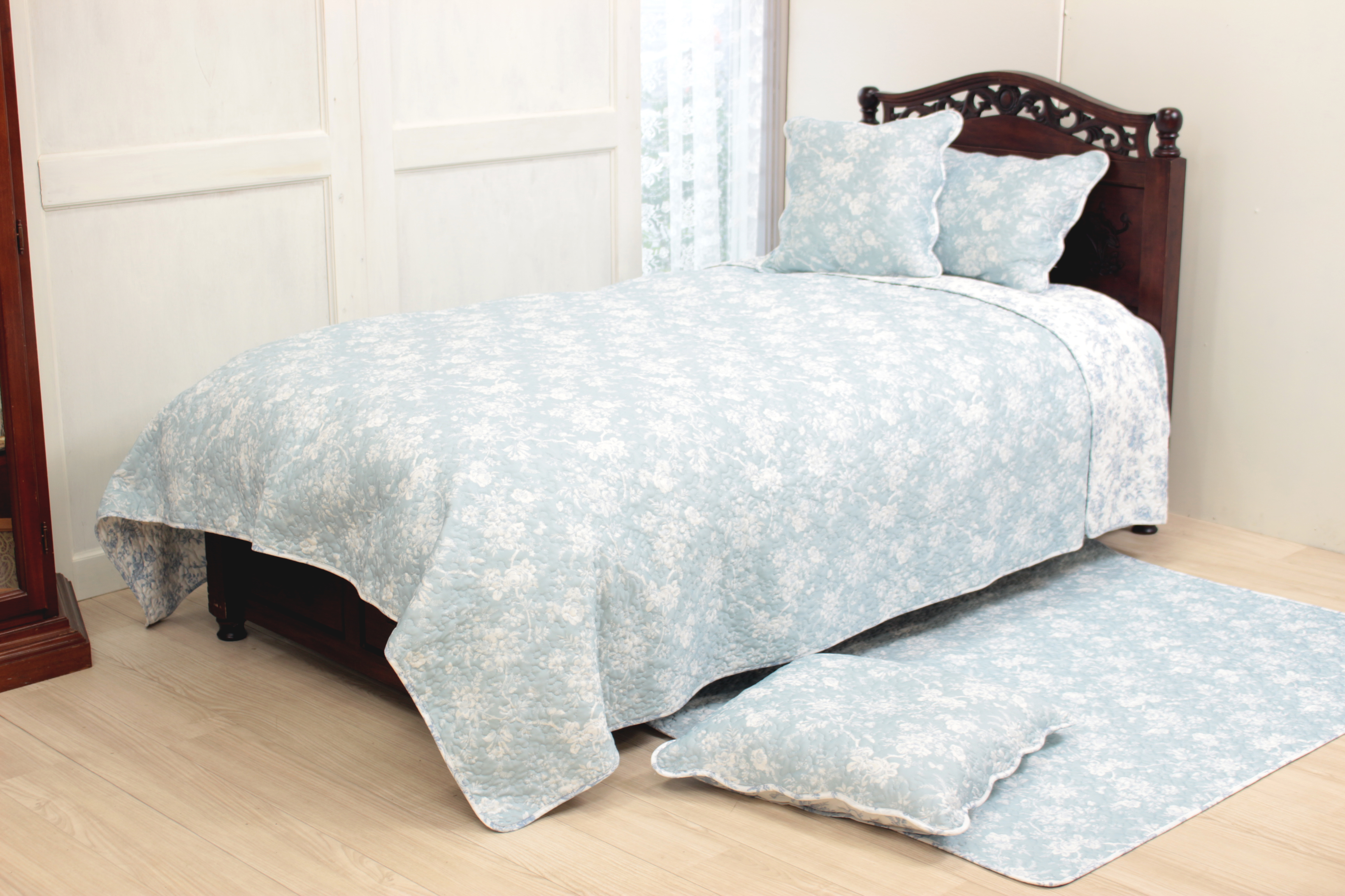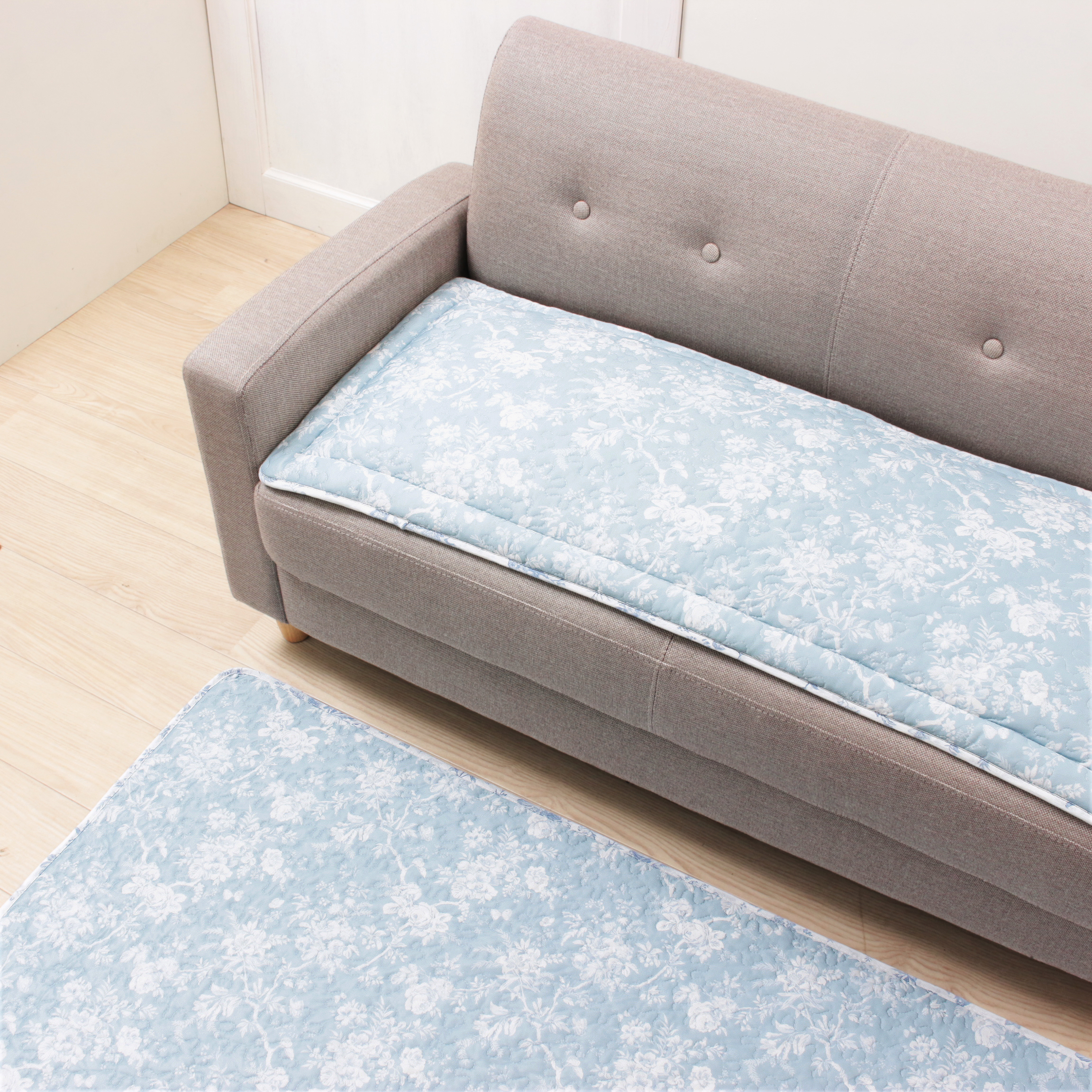 - ソフトなライトブルーの生地にキルティング加工を施した質感豊かなデザイン