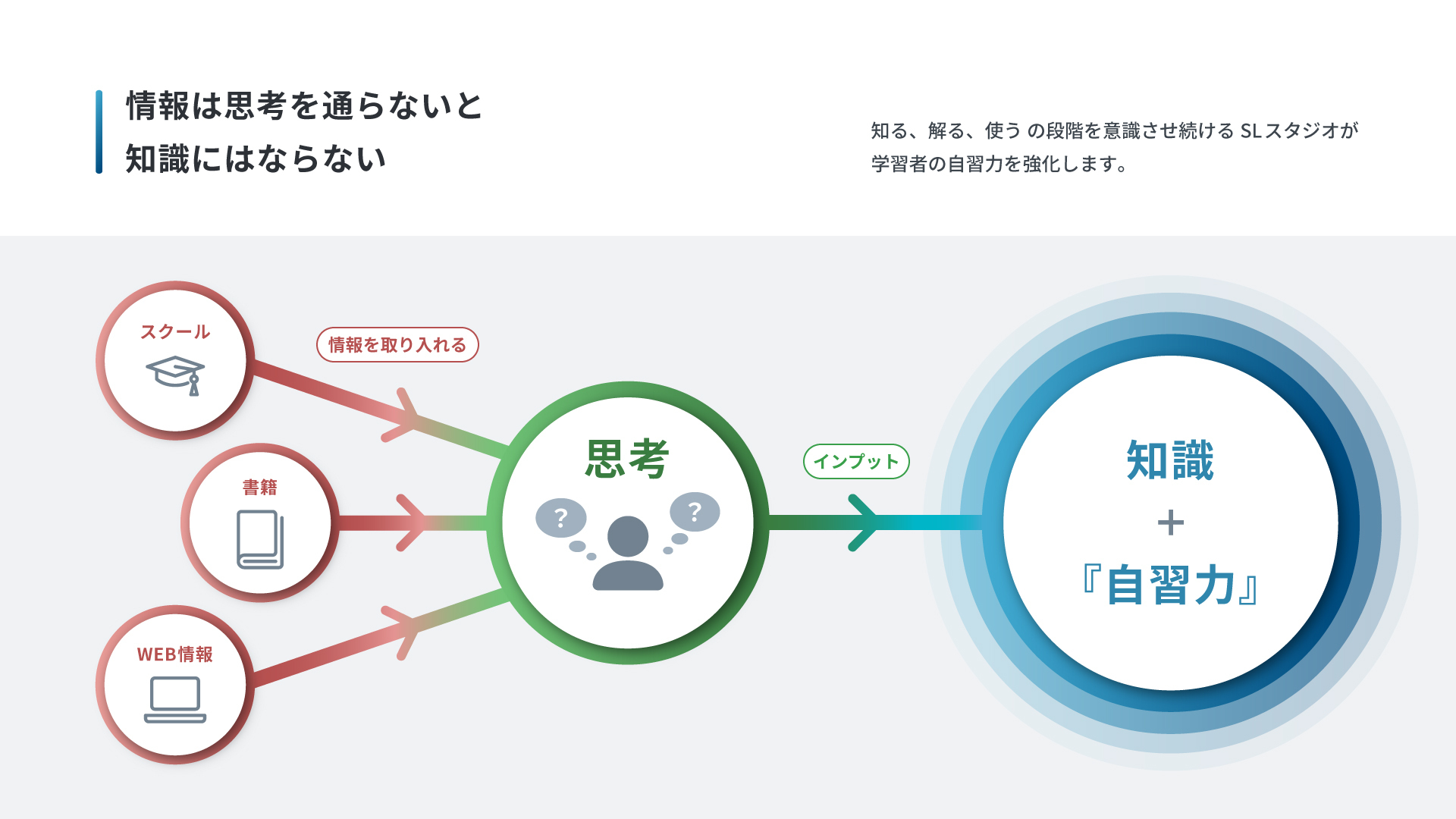 ・自習力を強制する有料級教材+持続学習可能なプラットフォーム=「SLスタジオ」