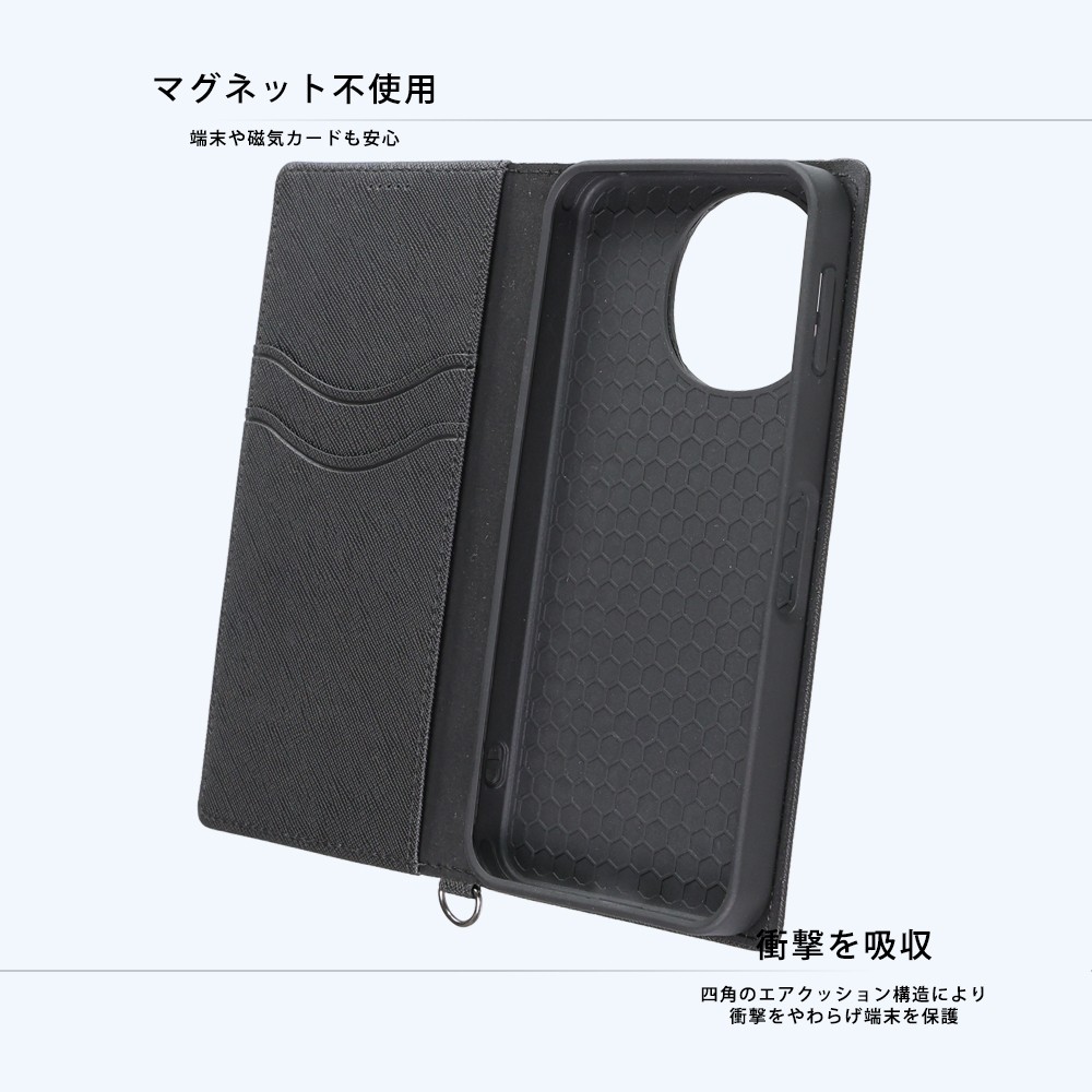 Durable 耐衝撃 マグネット不使用 シンプル スクエア 手帳型レザーケース