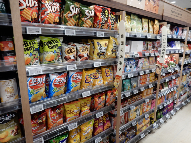 世界のお菓子として、韓国のおなじみのお菓子からフランスやイタリアなどの珍しい輸入菓子まで取りそろえました。