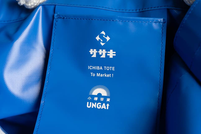 全盛期から比較すると数が少なくなったとは言え、小樽には6つの市場が存在しています。いつまでも食のエンターテインメントとしての市場文化が残って欲しいと願い、1945年創業のテント工場「株式会社ササキ」の長年培った縫製技術と小樽百貨UNGA↑の市場への想いが一つになり、「ICHIBA TOTE」が完成しました。テントなどの屋外施工に使う丈夫なターポリン生地を使った「ICHIBA TOTE」を片手に、さあ市場へ出かけよう!