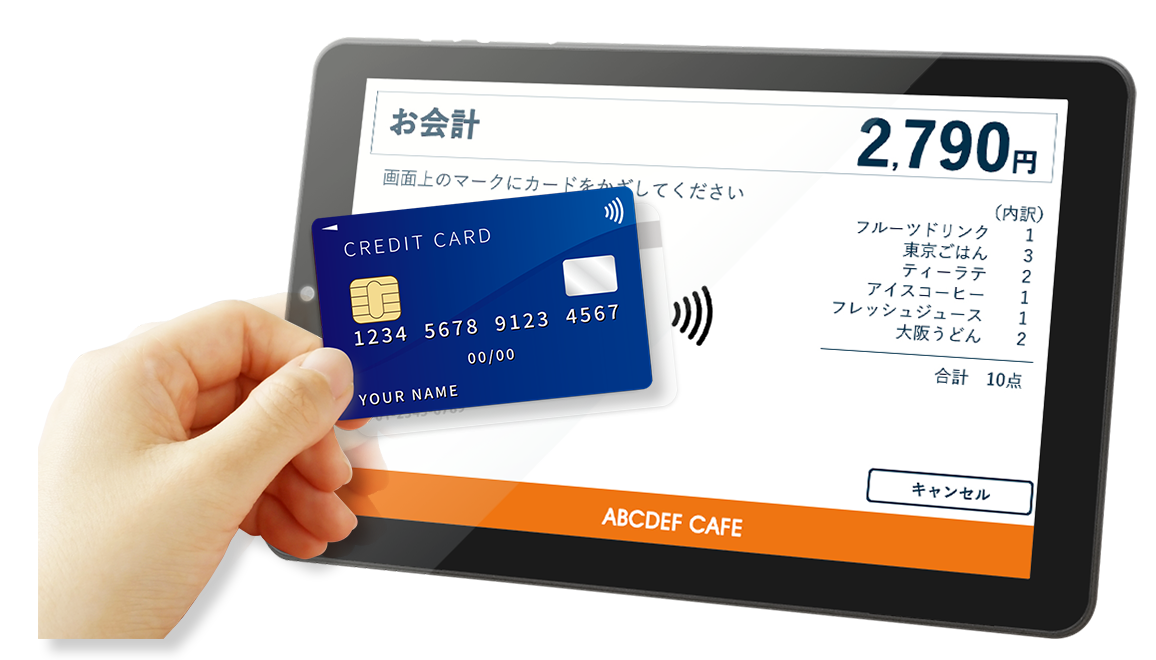近年、タッチによるキャッシュレス決済やマイナンバーカードの読み取り、入退室管理など、NFCの利用機会は増えています。NFCは主にスマートフォンや専用端末に搭載され、PCやタブレットでは外付けのカードリーダーを接続して使用する場合がほとんどでした。しかし、本機はNFC検定試験の中でも基準の厳しいFeliCa Mクラスに合格し、外付けカードリーダーが無くてもタブレットの大画面上でNFCを利用することが可能です。汎用性の高いAndroidタブレットに搭載することで、大幅な改修をすることなく現在利用中のアプリケーションを使用できます。例えば、飲食店のテーブルトップオーダーシステムと決済機能を組み合わせて、注文から決済までの一連の流れを本機だけで完結するなど、大幅な効率化を図れます。