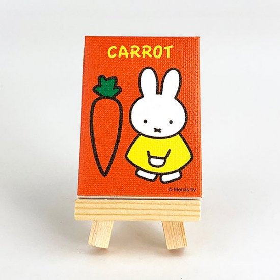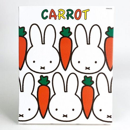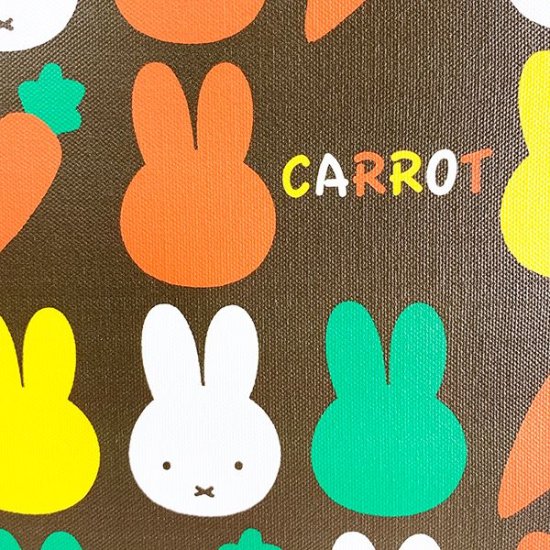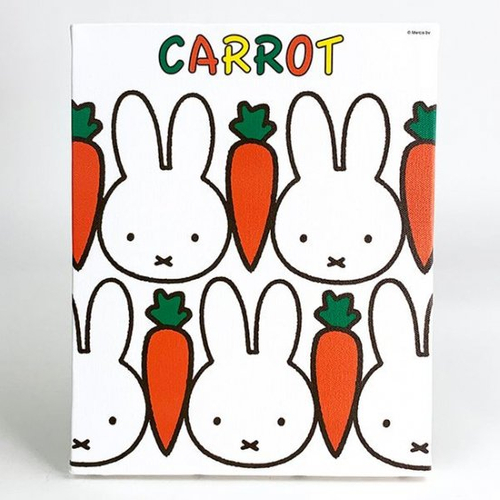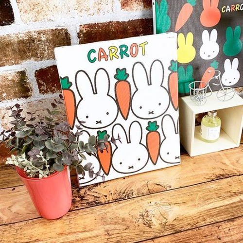 本物のキャンバスのような仕上がりの、インテリアアイテムです。ミッフィーのフェイスとニンジンが交互に並んでいて、とってもかわいいデザイン♪