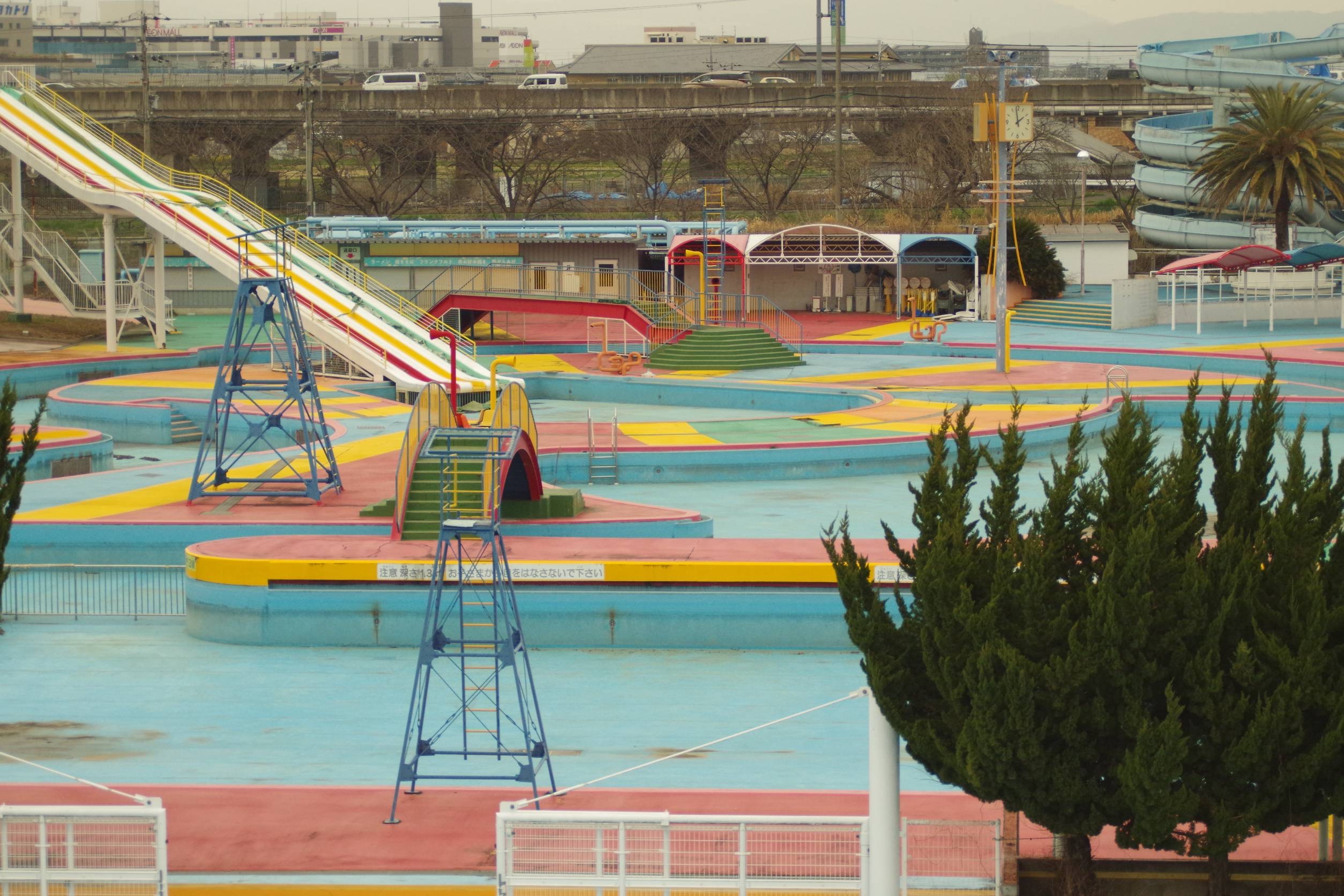 橿原市総合プールは、奈良で育った自分にとって子どもの頃から何度も通った思い出の場所でした。巨大なスライダーや流れるプールは、奈良の人なら一度は行ったことがあるような象徴的な場所だったと思います。