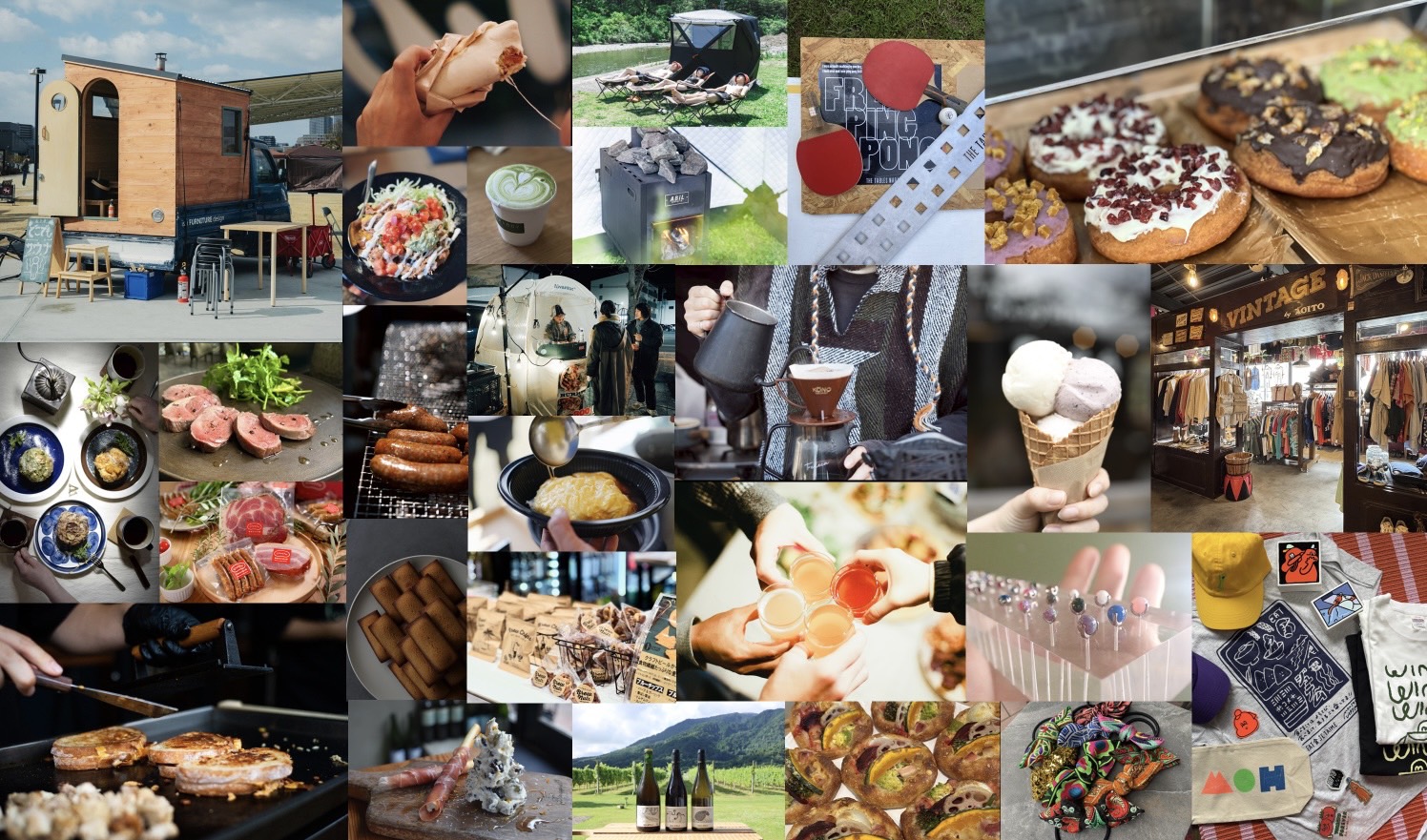 ABiL(新潟)/HOT SHOT SAUNA(京都)/SAUNA NO TSUDOI(京都)/けむり(奈良)/サウナカー Base(徳島)/サウナグルービー(愛知)/サバス(兵庫)/サモリ倶楽部(新潟)/ドガサウナ(滋賀)/どこでもサウナ(大阪)/ぬかとゆげ(京都)/花岡工務店(大阪)/蒸 -五箇サウナ-(京都)/+Ordinary(愛知)/ANTELOPE(滋賀)/GRAPE REPUBLIC(山形)/MATCHA BOY(大阪)/OK,ADAM(秋田)/SHINDO WINES(福岡)/カーブドッチ(新潟)/コーヒータロー(神奈川)/ハッピー太郎醸造所(滋賀)/ひげのコーヒー(長野)/ぷくぷく醸造(福島)/一般社団法人日本お茶割り協会(東京)/稲とアガベ(秋田)/印度乳業(京都)/奥谷農園(愛媛)/庄司珈琲焙煎所(和歌山)/味噌湯 志なだ(東京)/Burrito y tacos 5884(長野)/Bistro maru(神奈川)/cafeアマアイ(和歌山)/connect connection(大阪)/crucru 奥地ほうぼく豚(愛媛)/INDIA GATE(京都)/L&B sandwiches(東京)/lot(長野)/METZGEREI SAKAMOTO(和歌山)/PAAPLE(大阪)/The Source Diner(長野)/u3doco(東京)/where(東京)/さやかの天津飯(愛媛)/バガワーンカレー(大阪)/ふろろ(大阪)/ヤンフー(香川)/ヨコボリ(大阪)/ラオス料理タマサート(京都)/ラムセス(香川)/火曜腸詰倶楽部(京都)/亀は亀(茨城)/亀岡家|かめおかけ(愛媛)/山ねこ(京都)/山在り(山梨)/創作レストラン Mobo(和歌山)/台所 ねづく(大阪)/amijok(長野)/ogawaya(京都)/WHY BOWL(奈良)/パティスリーラール(和歌山)/ミルク工房そら(京都)/A.M.A(兵庫)/AGITO VINTAGE(大阪)/Chain & Co.(東京)/HEP sandal(奈良)/HIGE(大阪)/insyusyugi(大阪)/LINK(広島)/meme.(広島)/nakota(大阪)/NATURAL ANCHORS(長野)/NEBOH studio(香川)/numashop(大阪)/PEEPLE(大阪)/UNDERTHESUN(愛知)/WHY KNOT(奈良)/Yosemite(奈良)/キツネノウエ(和歌山)/ビアサーカス(山梨)/饅頭VERY MUCH(石川)/ISE STANDARD(大阪)/THE TABLES NARA(奈良)/旅する勝亦家(静岡)/Beer Again Shisha(静岡)/Flat Landing by NA(長野)/全日本棍棒協会(奈良)/BBQBs(奈良)/HITIMANA(奈良)/KAZUKI(Lightsout)(大阪)/DJ miharu(京都)/TAKUJI(Smash up)/(大阪)Yotoku Kobayashi(奈良)/ふらっと♭(京都)/陰徳JAY-Z a.k.a.きゅるるん(滋賀)