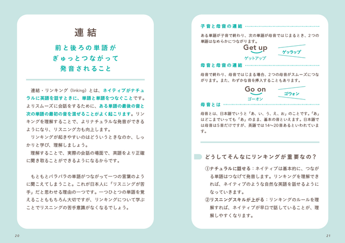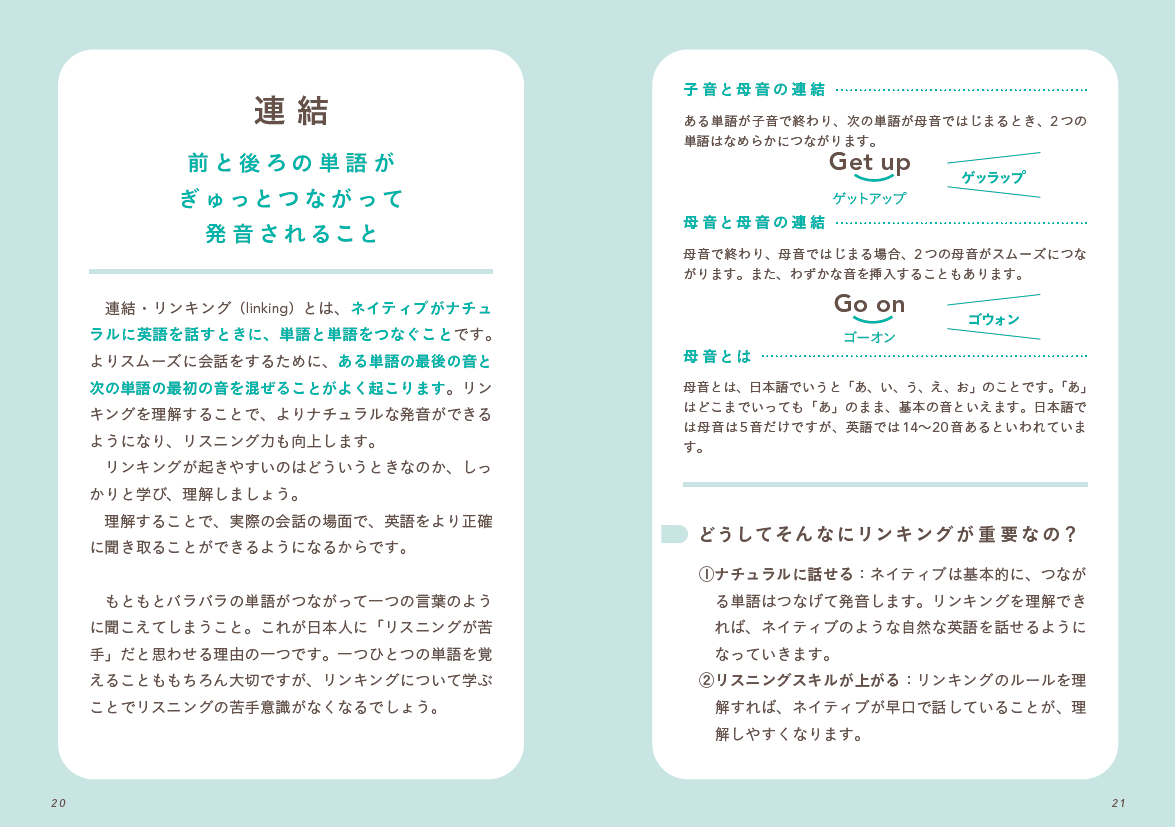 たとえば「Thank you.」は、英単語では「サンク」と「ユー」ですが、2つの単語がつながることで「サンキュー」になります。「Thank you」がつながって発音されることを、私たちはもう知っていますね。