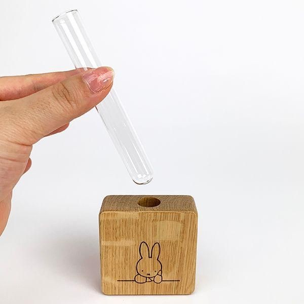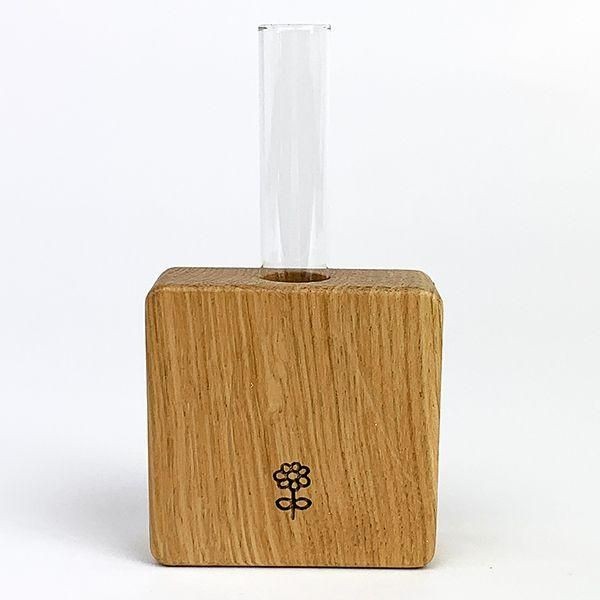 こちらはオーク材を使用しており、上品で落ち着いた雰囲気が魅力の一輪挿し。スペースを取らないスクエア型で手のひらサイズのコンパクトさが良き!