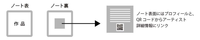 *表面はアーティストの作品画像、裏面にはプロフィールと QR コード(HACKK TAGアーティス ト詳細情報にリンク)が掲載されており、ノート自体がアーティストの広報ツールとなります。