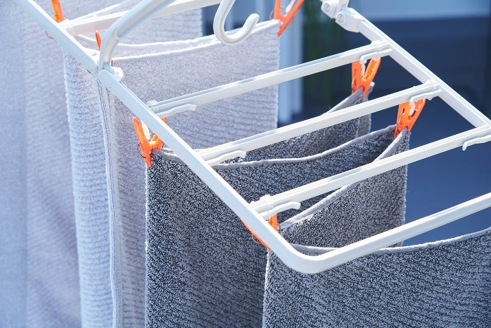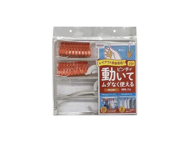 ・フレーム上のピンチは自由に配置・移動でき、干し間隔を自在に設定。