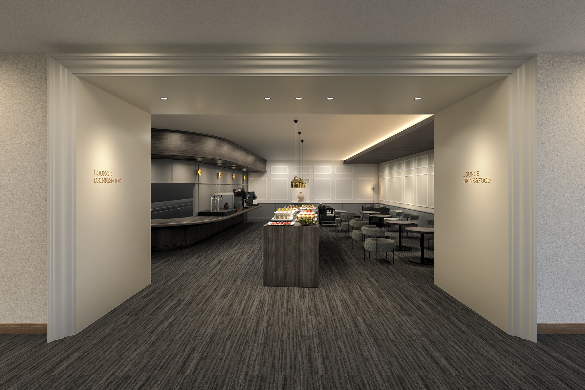 一歩足を踏み入れた瞬間、みなさまをお迎えするのが全面ガラス張りのラウンジ空間です。