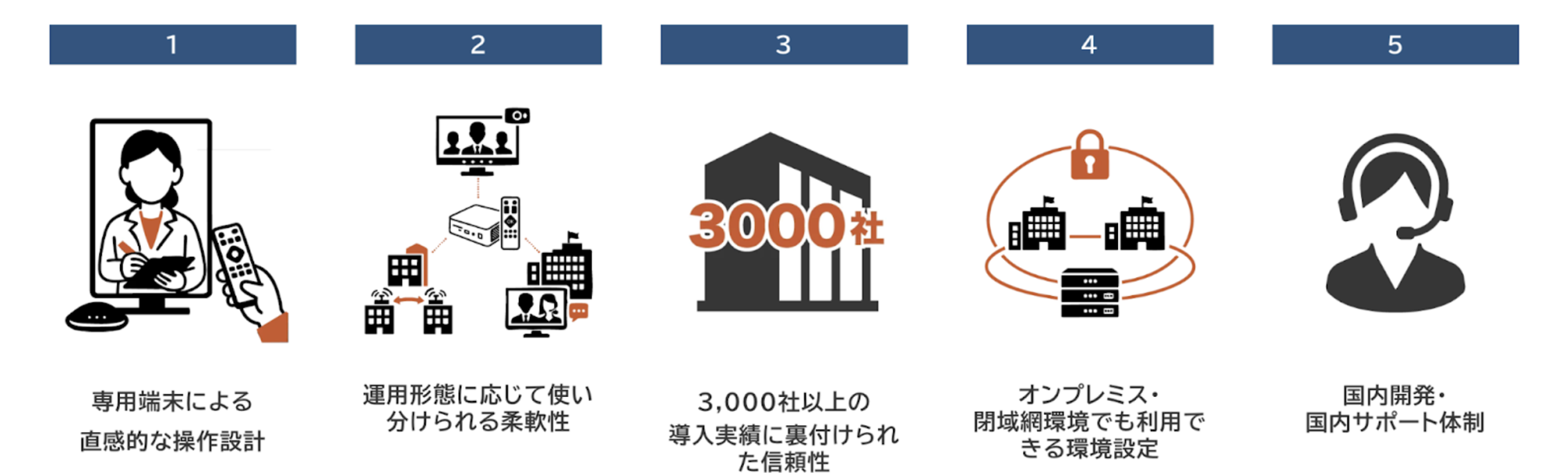 専用端末による「ボタン一つ」のシンプルな操作性と、安定した映像・音声品質を最大の特徴とし、接続準備や複雑な設定を一切必要としません。そのため、IT機器の操作に不慣れな現場であっても、導入したその日から日常業務の中で自然に利用できる点が非常に高く評価されています。
