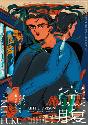 2024 年 7 月 11 日(木)~21 日(日)、下北沢 OFF・OFF シアターにて、かわいいコンビニ店員飯田さんの新作本公演『空腹』が上演される。