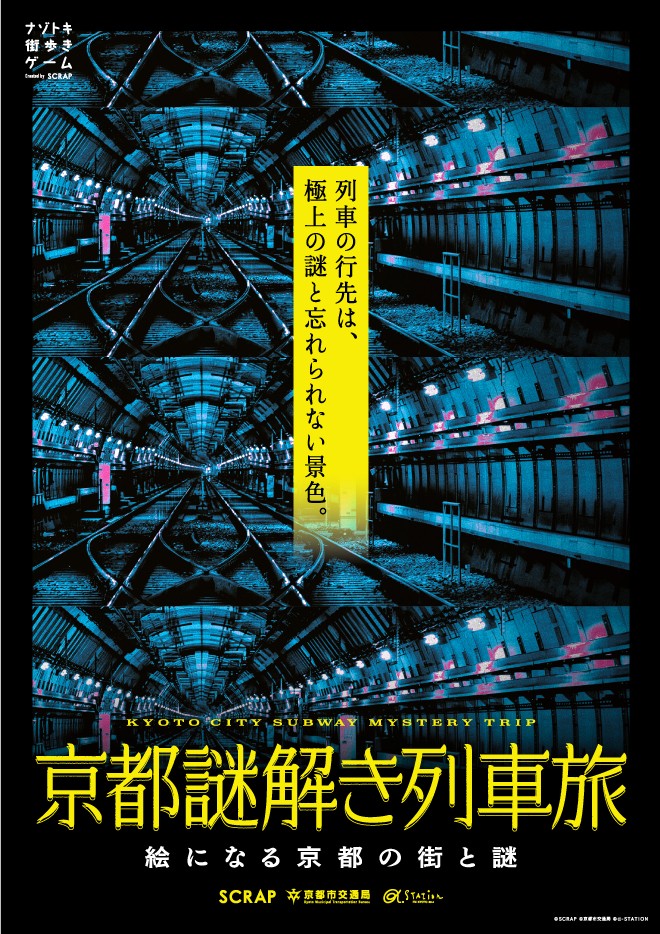 「リアル脱出ゲーム」発祥の地である京都で、SCRAP、京都市交通局、α-STATIONが贈る新作ナゾトキ街歩きゲーム『京都謎解き列車旅』。音楽を聴いて街を歩いて謎を解いて、京都をより深く楽しめる列車旅に、ぜひご期待ください。