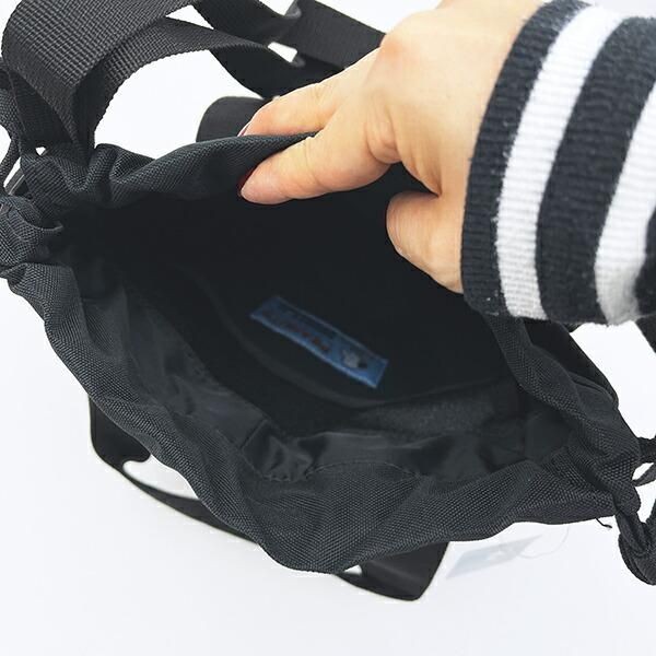 上が絞れて巾着仕様にもなるので、女性らしくてかわいらしい印象にも。手でもってトートバッグ感覚でもってもよし、ショルダー紐付き、ショルダーの長さ調節可能なので、肩にかけてお使いもいただけます。