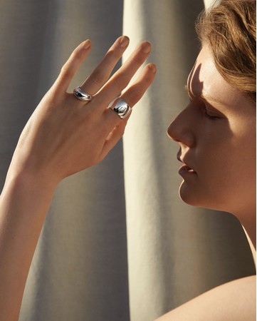時代をこえ、すべての年齢、性別に寄り添うデザイン。PURE SILVER 999が放つ光を活かした一点でも映えるミニマルさ。お気に入りのジュエリーとも美しくなじみ、コーディネートの幅が広がります。