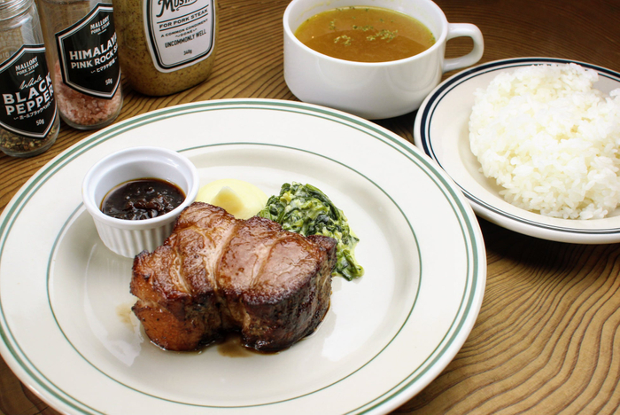 漫画みたいに巨大なポークステーキ専門店「マロリーポークステーキ」大手町店3月22日(火)に新規オープン!新たにセットメニューが登場 ライス・スープとセットで990円〜