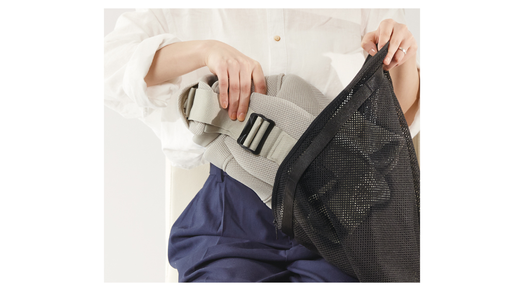 抱っこひもを快適に使うためには、体にしっかりとフィットするように装着することが大切です。「購入した抱っこひもがフィットしなくてゆるゆる」「接客時にベルトがフィットしなくて困る」という問題が起きないように、PULUAはウエストサイズが60cmの方でもフィットできるように特別設計しています。