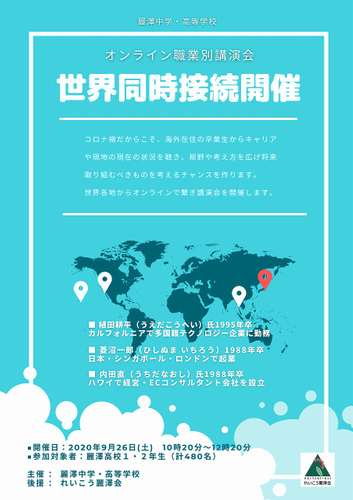 麗澤中学・高等学校(千葉県柏市/校長:松本卓三)は、高校1・2年生を対象に海外で活躍する卒業生を講師に『オンライン職業別講演会』を開催します。