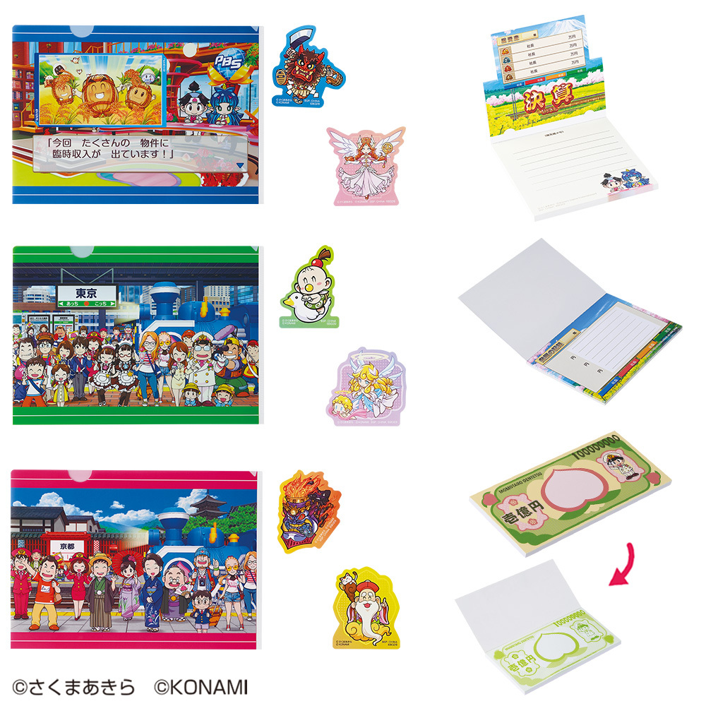 そのほか、プレーヤーアイコンに見立てた選べる4種のネームプレートと3種のチャーム、『桃太郎電鉄』にちなんだキュートなラバーコレクション、ゲームの順位が決定する「決算」にちなんだバラエティ豊かなステーショナリーと、いずれも『桃太郎電鉄』シリーズの魅力がつまった商品です。