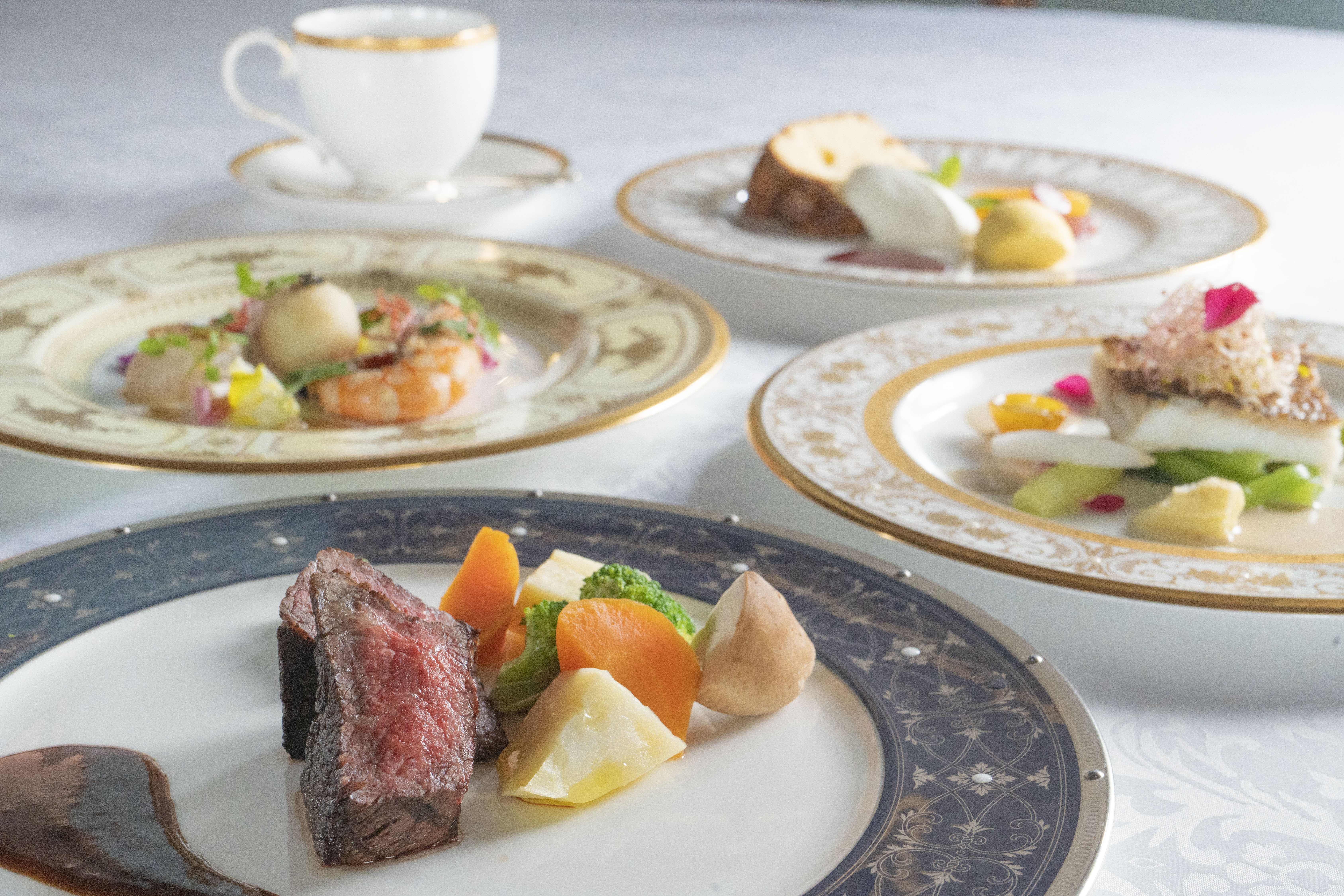 「海の舎」の看板コースメニューである『欧風浪漫コース』が、淡路島産食材にこだわった美食コースとしてリニューアル。淡路島で採れた旬食材をふんだんに使用し、コース料理の始まりは淡路島の季節の味覚を堪能できる「淡路旬食材の小前菜」、旬の淡路島野菜をポタージュにした「本日のスープ」が新たに加わりました。メインディッシュには、淡路島産の肉や魚を使用した3種の料理をご用意。淡路近海で育ち、良質な身が特徴の淡路鯛を使用した「淡路鯛のポワレ」や、南あわじの自然豊かな環境で育ち、自然な甘さと滑らかな口当たりのえびすもち豚を香ばしく焼き上げた「えびすもち豚のグリル クラシックスタイル」、柔らかくきめ細やかな肉質が特徴の淡路牛を使用した「淡路牛クラシックハンバーグ&エビフライ」の3種からお好きな料理をお選びいただけます。