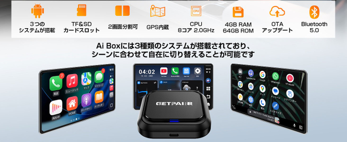 挿すだけで“車内Android化”。CarPlay/Android Autoもまとめて使える新発売「GetPairr AI Box 2.0」──発売記念40%OFFで15,584円、待ち時間を自由へ。